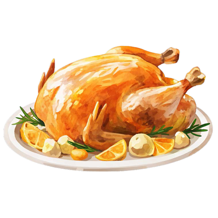 * Two Mains: one Beef or Pork and one Chicken (e.g., Beef Stroganoff, Pork Roast, Roast Chicken)